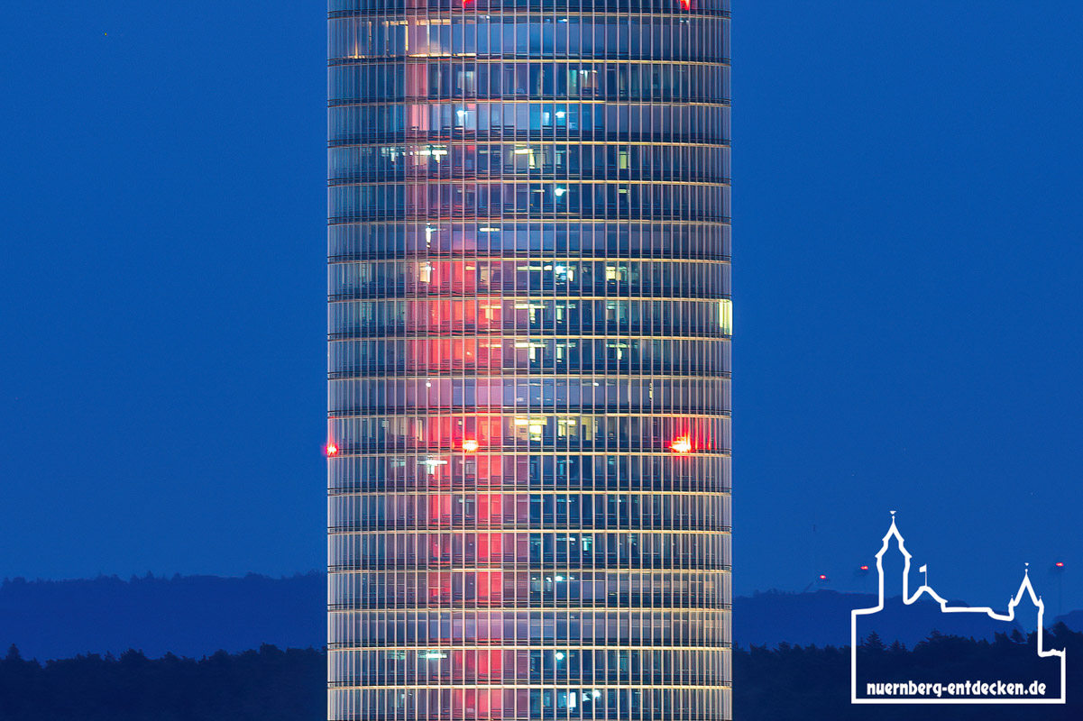 Wahrzeichen am Wöhrder See: Der markante Business Tower Nürnberg als beliebtes Fotomotiv und Symbol der Stadt